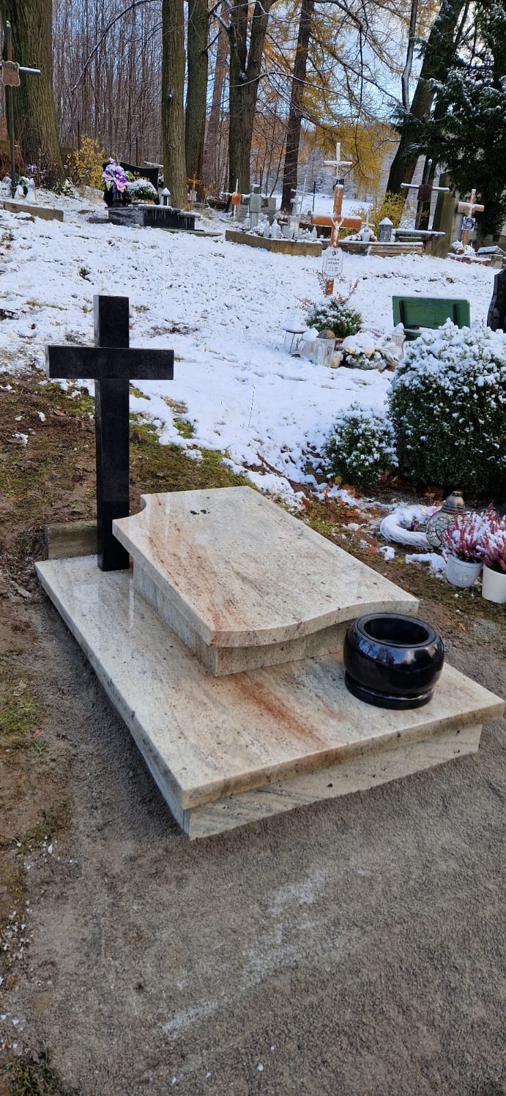Nazwa: 2058 Nagrobek urnowy z czarnym krzyżem i misą