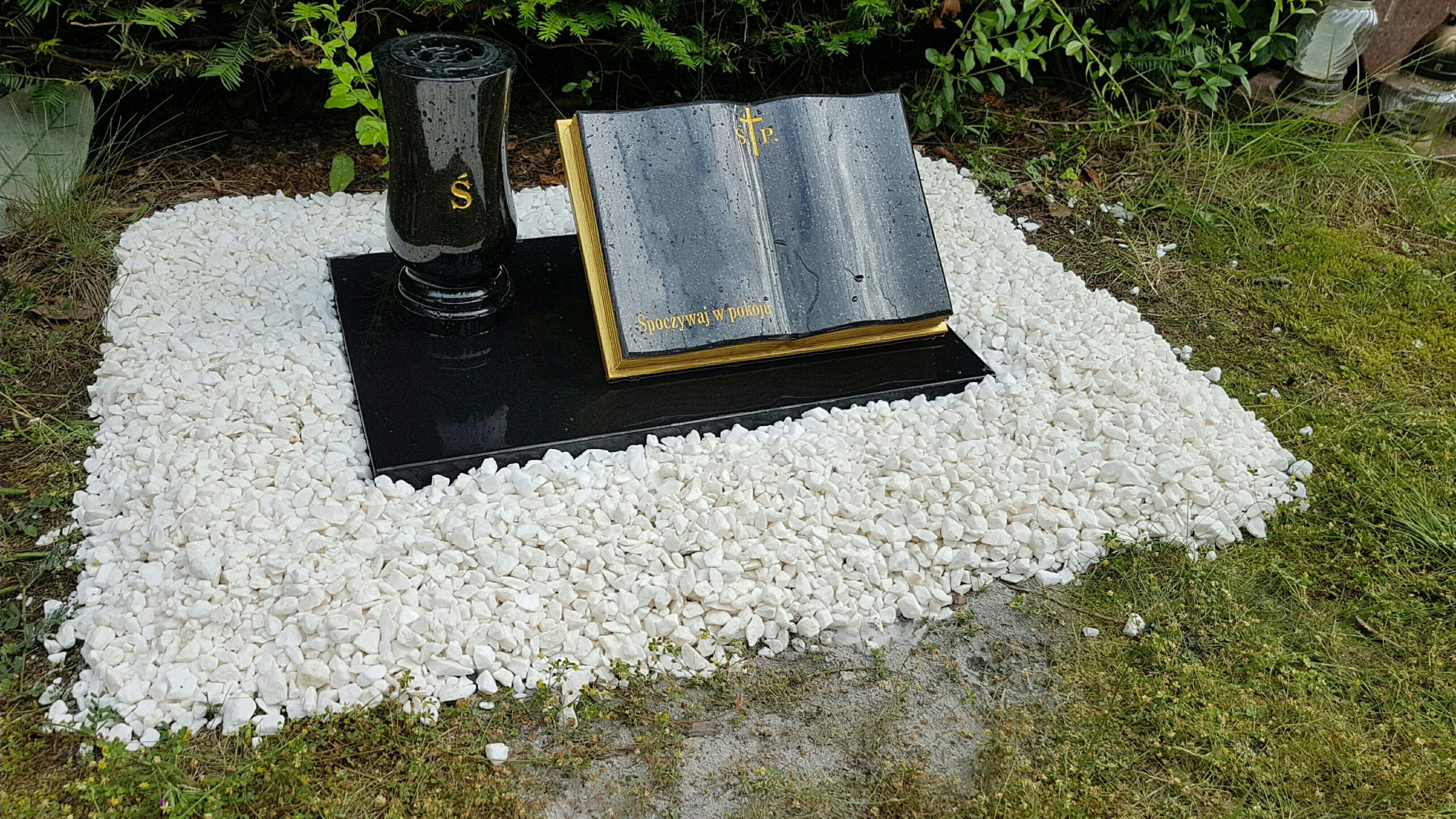 Nagrobek urnowy z książką i wazonem, granit szwed nr.1078