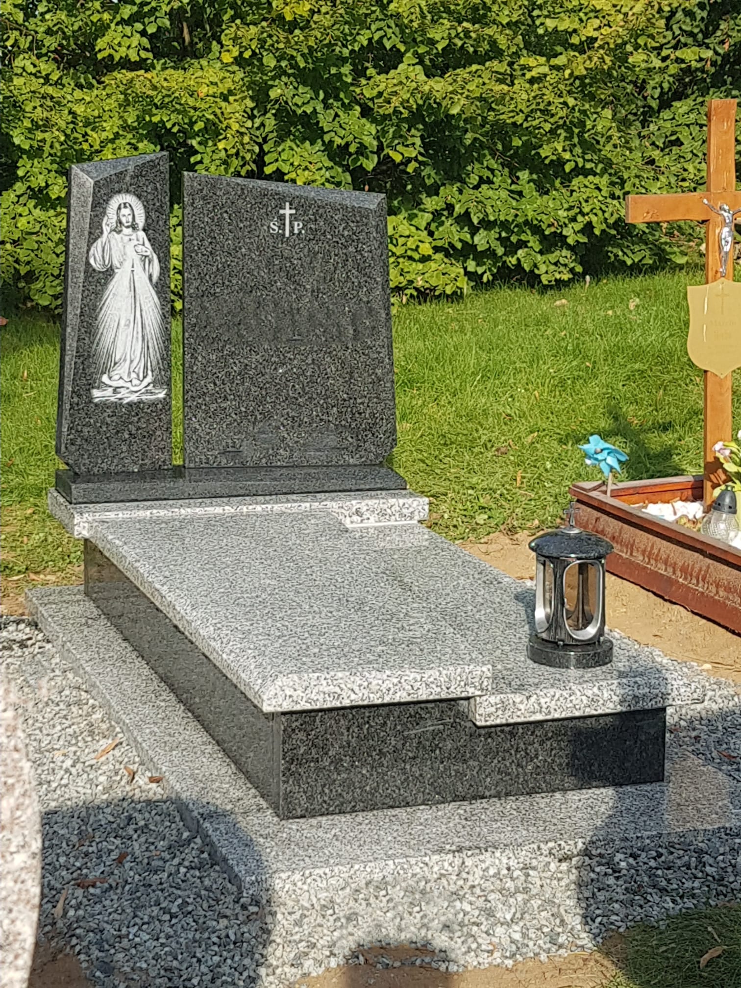 Nazwa: 1119 Nagrobek granitowy z grawerem i lampionem