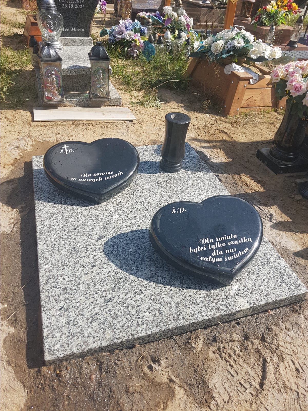 Nazwa: 1901 Nowoczesny nagrobek urnowy – dwa czarne serca i dwa wazony